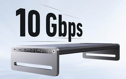 monitor stand, reducing desk clutter while housing essential ports. It offers